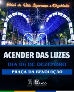 A Prefeitura de Rio Branco dará início à programação natalina no próximo dia 6 de dezembro, com uma noite especial marcada pelo acender das luzes