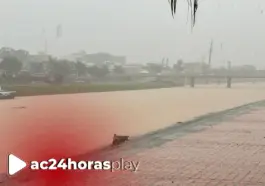 As fortes chuvas que atingem Rio Branco nas últimas horas provocaram alagamentos em diversos pontos da cidade e elevaram rapidamente o nível do Rio Acre.