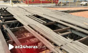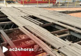 A passarela de madeira da ponte metálica, em Rio Branco, segue apresentando risco para os pedestres que precisam atravessar diariamente entre o centro e o