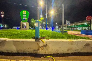 Balizadores e postes de iluminação pública no recém-reformado canteiro da avenida Chico Mendes, no segundo distrito de Rio Branco, estão tendo suas fiações furtadas por