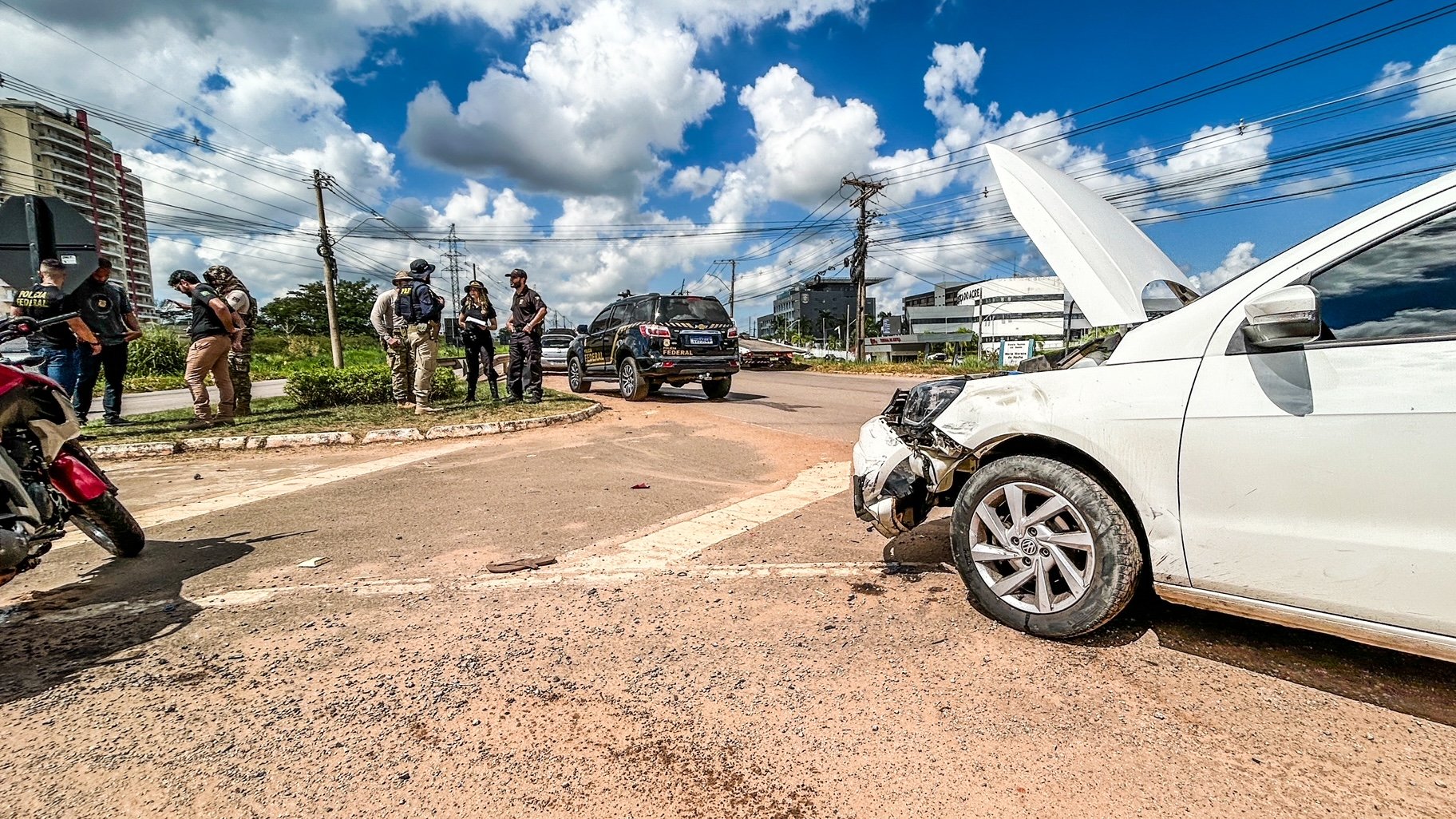 Motociclista sofre escoriações em acidente com viatura da PF