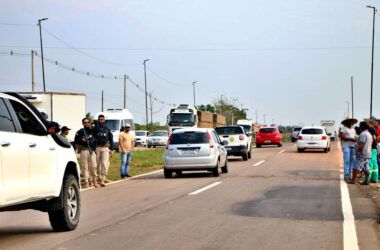 A BR-364, que estava fechada no quilômetro 18, na altura do Ramal do Romão, desde as 5 da manhã desta segunda-feira, 28, foi liberada totalmente