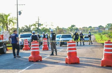 FOTOS: JARDY LOPES/ac24horas Policiais do Batalhão de Trânsito da Polícia Militar bloquearam a estrada do Irineu Serra na tentativa de impedir que moradores da invasão
