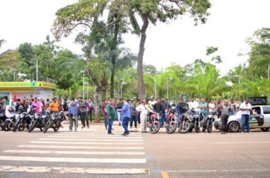 Foto: Whidy Melo/ac24horas Motoristas que trabalham com aplicativo em motos se reúnem na manhã desta segunda-feira, 22, em frente a Prefeitura de Rio Branco para