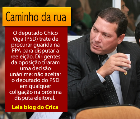 O deputado Chico Viga (PSD) trate de procurar guarida na FPA para disputar a reeleição. Dirigentes da oposição tiraram uma decisão unânime: não aceitar o