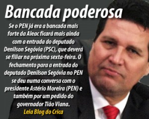 Se o PEN já era a bancada mais forte da Aleac ficará mais ainda com a entrada do deputado Denilson Segóvia (PSC), que deverá se