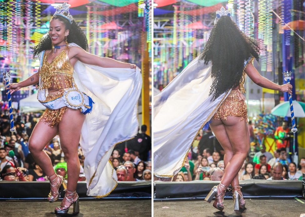 Rainha do Carnaval se apresenta ao som da bateria Sem Limites