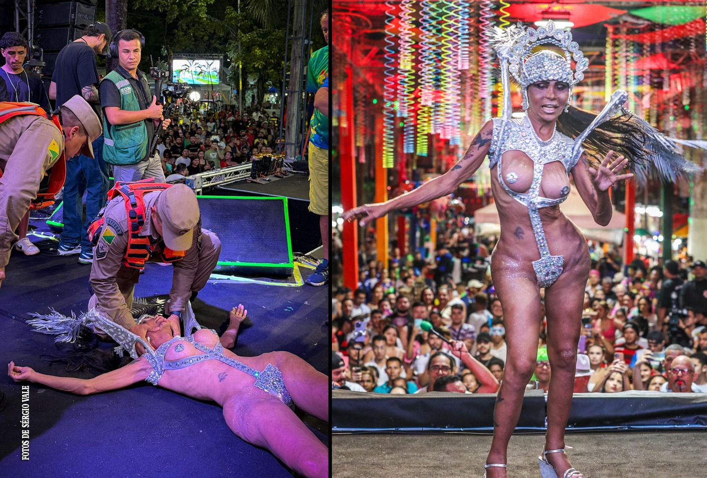 Candidata a Rainha Trans desmaia durante desfile na segunda noite de Carnaval