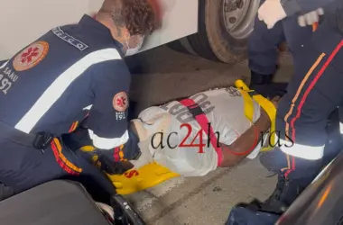 Um acidente envolvendo duas motocicletas deixou um homem ferido na noite de sábado (12), na Avenida Ceará, região central de Rio Branco. A vítima, identificada