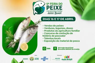 A 5ª edição da Feira do Peixe e da Agricultura Familiar será realizada nos dias 16 e 17 de abril, a partir das 8h, no
