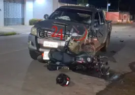 Um acidente de trânsito deixou a motociclista Jéssica da Silva Anedino, de 34 anos, em estado grave na noite deste sábado (25), na Rua Nossa