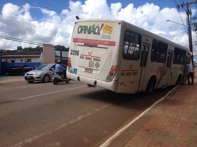 Em pleno horário de pico no trânsito no centro de Rio Branco, um ônibus da empresa São Judas Tadeu quebrou a barra de direção na