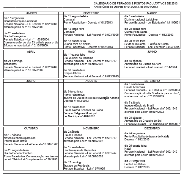 Tradicionalmente, os brasileiros usufruem de nove feriados nacionais e de sete pontos facultativos por ano. Salvo quando algum desses dias cai no fim de semana.