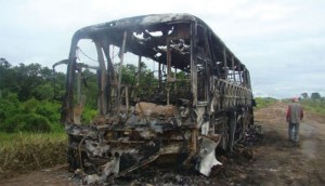 A caminho de Cruzeiro do Sul, ônibus é destruído pelo fogo