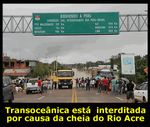 Luciano Tavares, da redação de ac24horas A rodovia Transoceânica, que liga o Brasil ao Peru, está interditada por causa da cheia do Rio Acre que