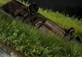 Um carro pertencente a uma funerária saiu da pista e capotou na noite desta quinta-feira (25) na estrada do Aeroporto, em Rio Branco. O acidente