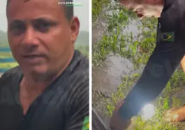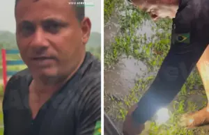 O secretário municipal de Produção e Sustentabilidade de Jordão, interior do Acre, Eudes Mendes, encontrou um peixe-elétrico, conhecido como poraquê, em uma área alagada da