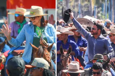 O governador do Acre, Gladson Cameli (Progressistas) e a vice-governadora (Progressistas) saíram em comitiva na manhã deste sábado, 26, da tradicional Cavalgada que marca a