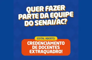 O Serviço Nacional de Aprendizagem Industrial (SENAI-AC) está recebendo currículos de profissionais interessados em desenvolver atividades de instrutoria nos cursos de Aprendizagem, Qualificação e Técnico