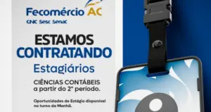 O Sistema Fecomércio-Sesc-Senac/AC está com oportunidade de estágio aberta para estudantes do curso de Ciências Contábeis, a partir do 2º período da graduação. A vaga