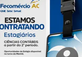 O Sistema Fecomércio-Sesc-Senac/AC está com oportunidade de estágio aberta para estudantes do curso de Ciências Contábeis, a partir do 2º período da graduação. A vaga