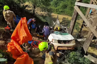 Uma caminhonete Hilux, de cor branca, placa MZR-7807, da Empresa Municipal de Urbanização de Rio Branco – EMURB, caiu da ponte dentro do igarapé Vai