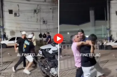 Uma briga envolvendo dois homens foi registrada na noite dessa sexta-feira, 16, nas proximidades de um bar, em Rio Branco (AC). As agressões físicas, que