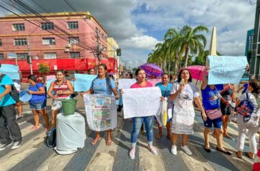 Dezenas de mães de crianças com o Transtorno do Espectro Autista (TEA) fizeram uma manifestação bloqueando a rua Sergipe, no centro de Rio Branco, nesta