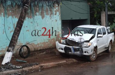 Uma colisão entre uma caminhonete modelo Hilux, de cor branca, placa OVG-0J66 e um poste de energia elétrica deixou a passageira Marilene Oliveira de Andrade,
