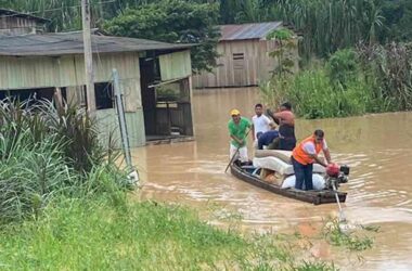 O nível do Rio Acre já atingiu a cota de alerta no município de Assis Brasil e já desabriga as primeiras famílias no município que