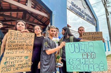 Pais de alunos e estudantes da escola Jornalista Armando Nogueira, em Rio Branco, fizeram uma manifestação na manhã desta segunda-feira (15), em razão do afastamento