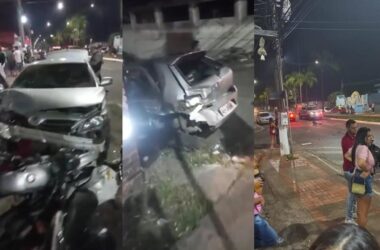 Um grave acidente de trânsito envolvendo um veículo modelo Corolla, de cor prata, um carro Fiat Pálio, de cor prata e algumas motocicletas deixou cinco
