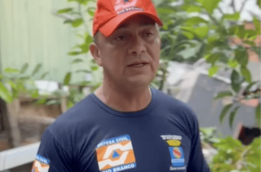 Durante a gravação de vídeo em que o coordenador da Defesa Civil de Rio Branco, Cláudio Falcão dá detalhes do atendimento às famílias do desmoronamento