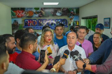 FOTO – Jardy Lopes/ac24horas Em coletiva de imprensa realizada na manhã desta quinta-feira, 5, o prefeito Tião Bocalom (Progressistas) anunciou no gabinete da prefeitura de