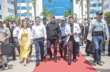 O governador Gladson Cameli (Progressistas) participou na tarde desta quinta-feira, 3, da reunião bilateral em Porto Velho, capital de Rondônia, no Palácio Rio Madeira, sede