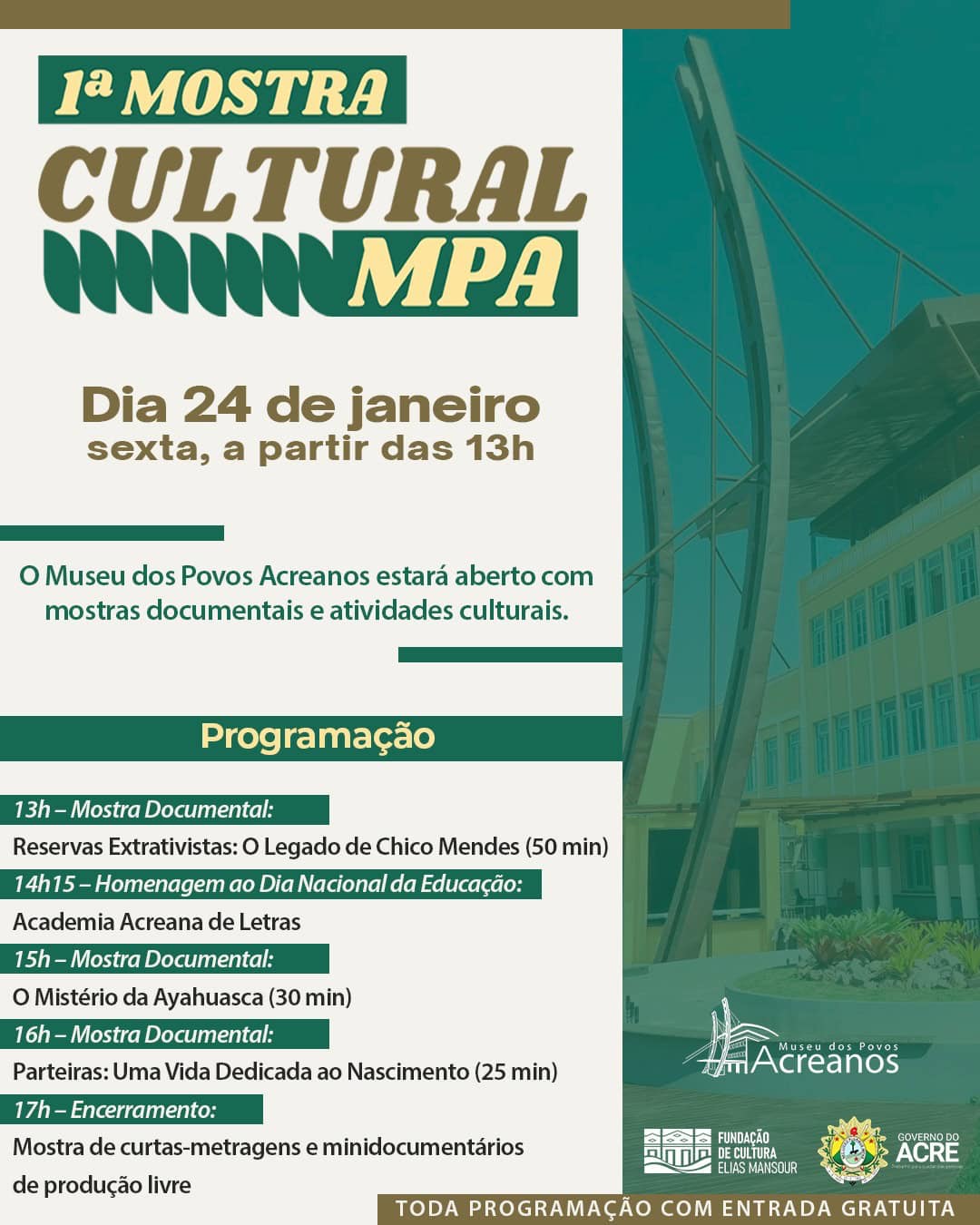 Museu dos Povos Acreanos abrira 1ª Mostra Cultural na sexta