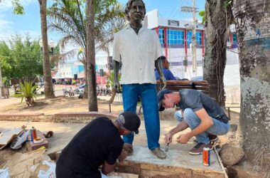 A estátua da personalidade de Chico Mendes, símbolo da luta pelos direitos dos seringueiros, retornou à Praça dos Povos da Floresta, no centro de Rio