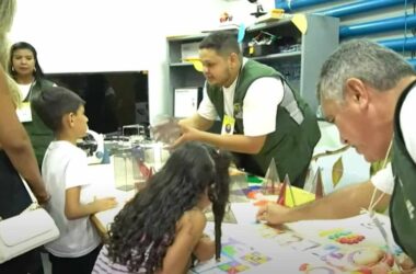 O estande da secretaria de Educação do Acre, dentro do Galpão Institucional da Expoacre, mostra programas da SEE, como o Pré Enem Legal e laboratórios