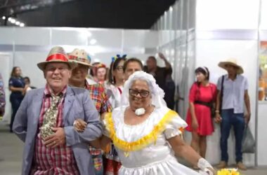 O grupo da Terceira Idade do Serviço Social do Comércio- Sesc, apresentou nesta segunda-feira, 31, na Expoacre, uma quadrilha junina. Vestidos a caráter e dançando