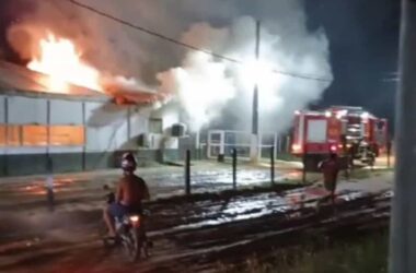 O escritório da empresa Zopone, em Tarauacá, pegou fogo na noite desta quinta-feira, 18, no Bairro Corcovado. No Acre, a Zopone trabalha no linhão de