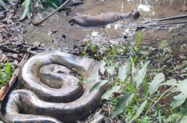 Na tarde desta quarta-feira (20), no bairro São Francisco, município de Rodrigues Alves, uma cobra sucuri de mais de 5 metros matou um cachorro e