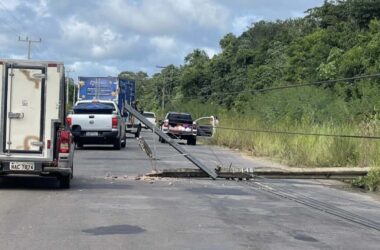 Lancha arranca poste na estrada que liga Cruzeiro do Sul à Mâncio Lima
