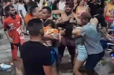 Duas mulheres brigaram ao som do carnaval e toda a confusão foi filmada na madrugada desta segunda-feira, 12, na Praça Orleir Cameli, em Cruzeiro do