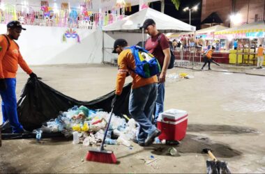Em Cruzeiro do Sul, três toneladas de lixo já foram recolhidas pela prefeitura nas duas noites de carnaval na Praça Orleir Cameli, no Centro da