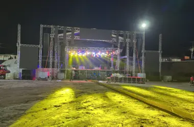 O palco principal do Festival da Farinha, em Cruzeiro do Sul, já está pronto para receber cerca de 100 artistas que vão se apresentar no