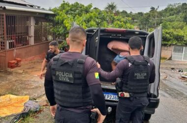O homem identificado como M. V. O., conhecido como “Rato”, de 42 anos, foi preso em flagrante durante cumprimento a um mandado de prisão por