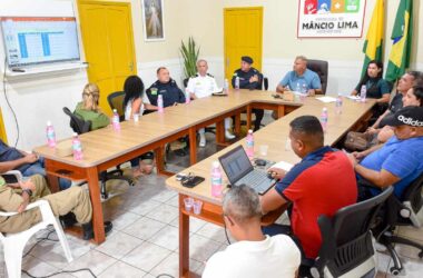O prefeito de Mâncio Lima, Isaac Lima, se reuniu nesta terça-feira, 16, com a comissão organizadora do Carnaval Eco Folia, representantes das forças de segurança,