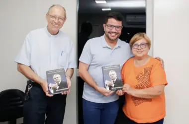 Dona Beatriz Cameli, viúva do ex-prefeito de Cruzeiro do Sul e ex-governador do Acre, Orleir Cameli, entregou o livro que escreveu sobre o marido para