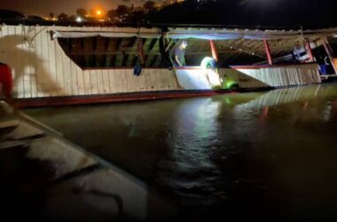 Barco com 25 pessoas bate em tronco e naufraga no Rio Juruá