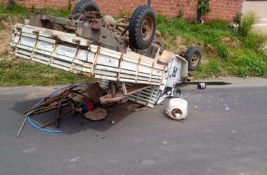 Um carro do Serviço de Água e Esgoto do Estado do Acre – Saneacre, capotou na tarde desta terça-feira, 18, em uma ladeira no Bairro